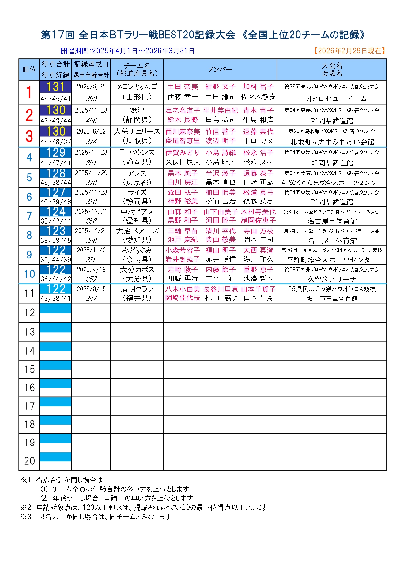 (1)申請対象得点は、ホームページ上に掲載されるベスト20の最下位得点以上とする。